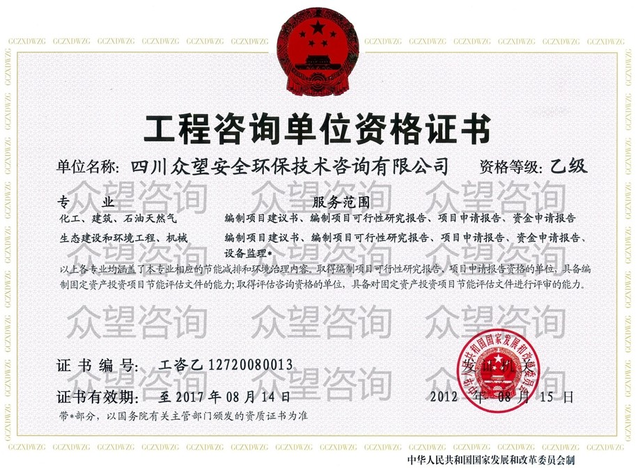 四川眾望安全環保技術咨詢有限公司 電  話:028-86258172/86258173/028-86258174/86258095  傳  真:028-86258093/86258552